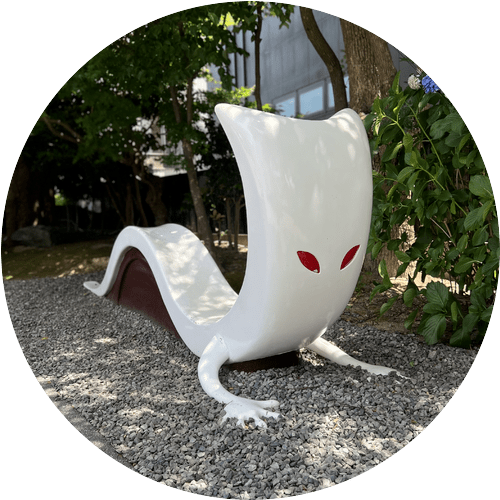 妖怪の街を歩き回って疲れたら妖怪広場でひと休み。 妖怪に囲まれた休憩スペースです。