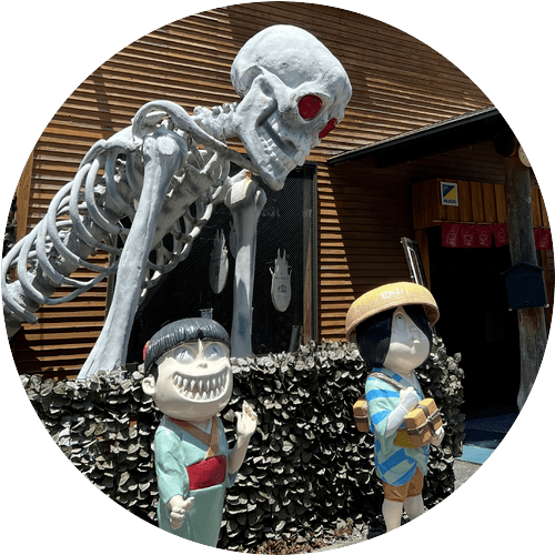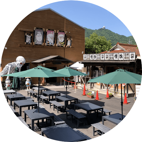 ゲゲゲの妖怪楽園とは『ゲゲゲの鬼太郎』の世界を、見て・遊んで・楽しめるスポット――それが「妖怪楽園」です。境港駅から徒歩約10分、鬼太郎や目玉おやじなど、おなじみの妖怪たちとふれあいながら、懐かしい縁日風のゲームやフォトスポットを満喫できます。