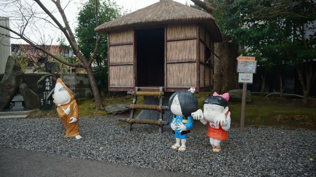 子どもだけが入れる鬼太郎の家だよ! 鬼太郎、目玉おやじ、ねずみ男、ねこ娘にあいさつを忘れずに!